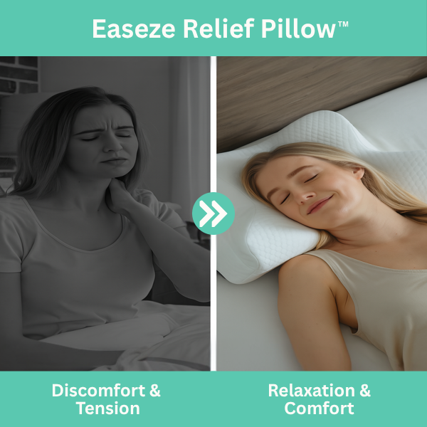 Every night, your body is begging for rest—but the wrong pillow keeps your neck stuck in an awkward position. That’s why the Easeze Relief Pillow™ was made to give you real support while you sleep. Its ergonomic contour cradles your neck and keeps your spine aligned, no matter how you sleep. The premium memory foam is soft where it should be and firm where it matters, helping you relax deeply without pressure or pain. Wake up feeling refreshed, not wrecked.