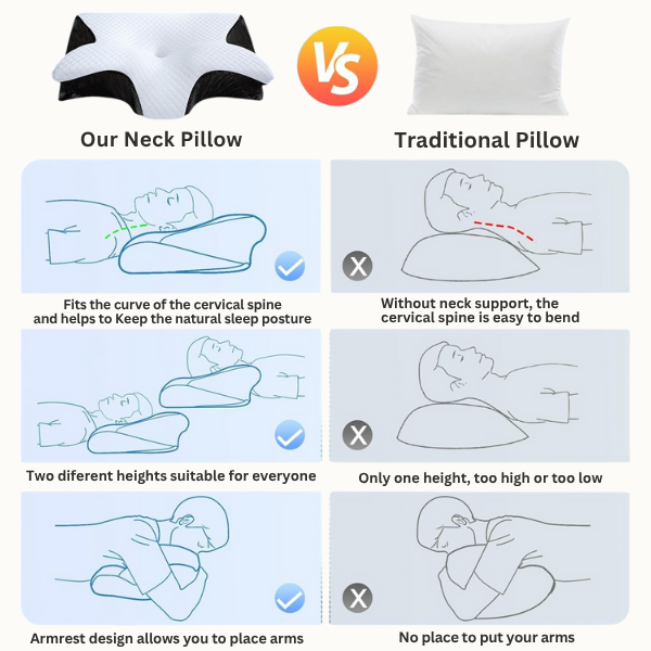 Our pillow isn’t just fluff — it’s designed with science. The contoured shape supports your neck and shoulders to keep your spine aligned while you sleep. Regular pillows flatten out or bunch up, but this one holds its shape to actually improve how you feel in the morning.